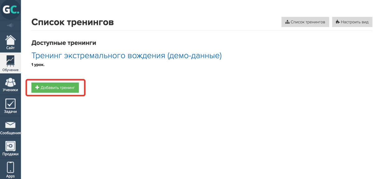 Создать тренинг – указать особенности уроков и создать доступ к ним.