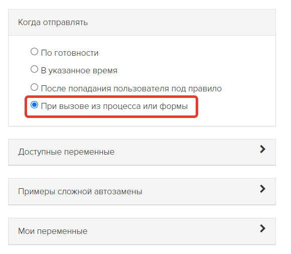 Внутри блока можно выбрать одного или нескольких сотрудников – менеджеров или администраторов. Чтобы сообщение было информативным, можно использовать переменные в его тексте. Важно правильно указывать переменные.