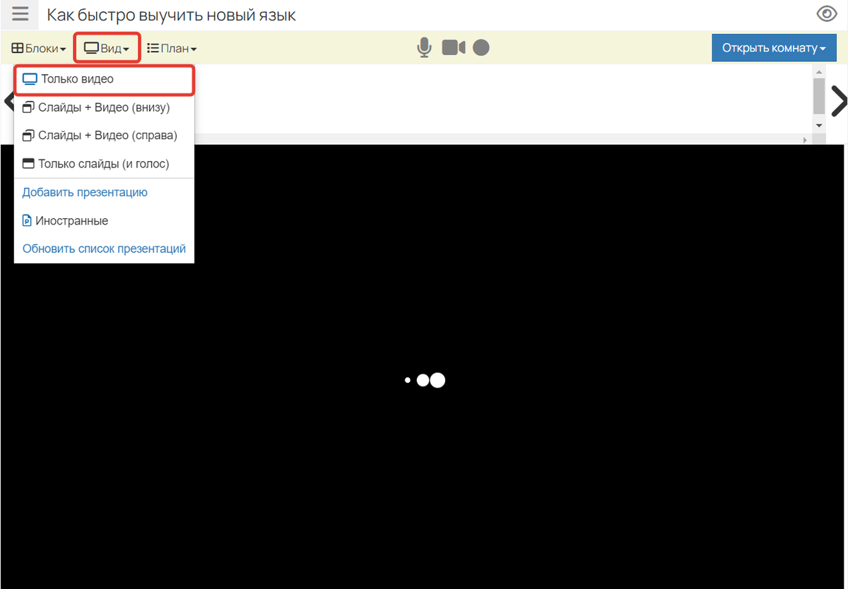 После сохранения вы войдете в комнату вебинара.