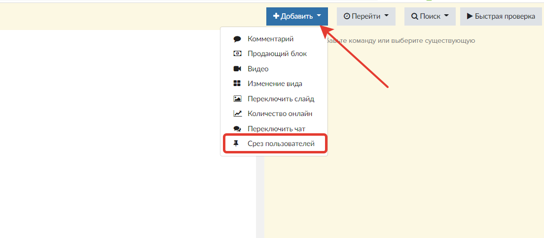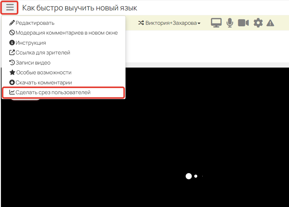 Если требуется получить перечень пользователей, присутствующих в определенный важный момент трансляции, во время вебинара выберите опцию «Сделать срез пользователей». Позже, например, можно обзвонить участников по полученному списку и выяснить интересующую информацию.