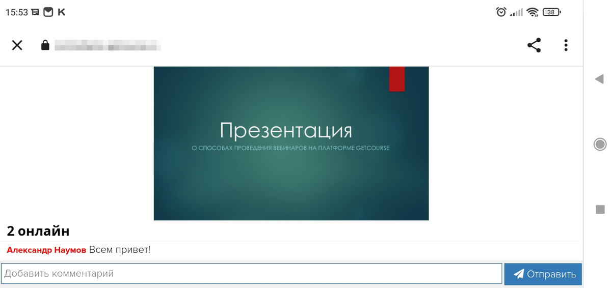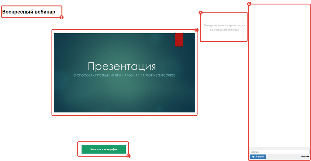 Как вебинарная комната выглядит для зрителей на GetCourse