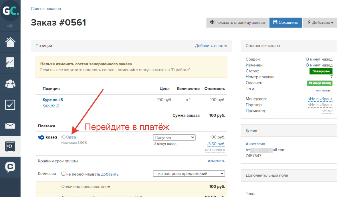 Как добавить информацию о возврате в карточке заказа на Getcourse