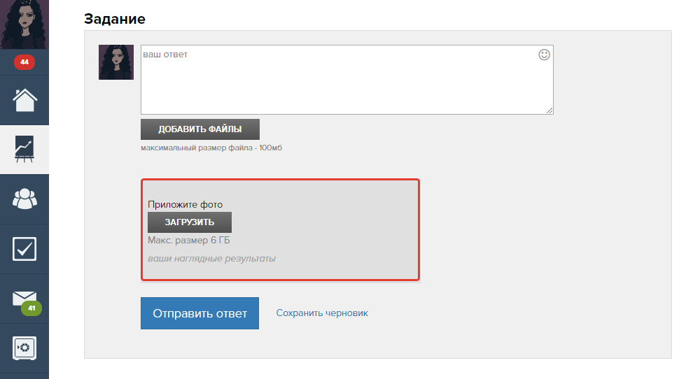 Ученик может самостоятельно загрузить файл, например фото, подтверждающее успешные достижения в других целях.