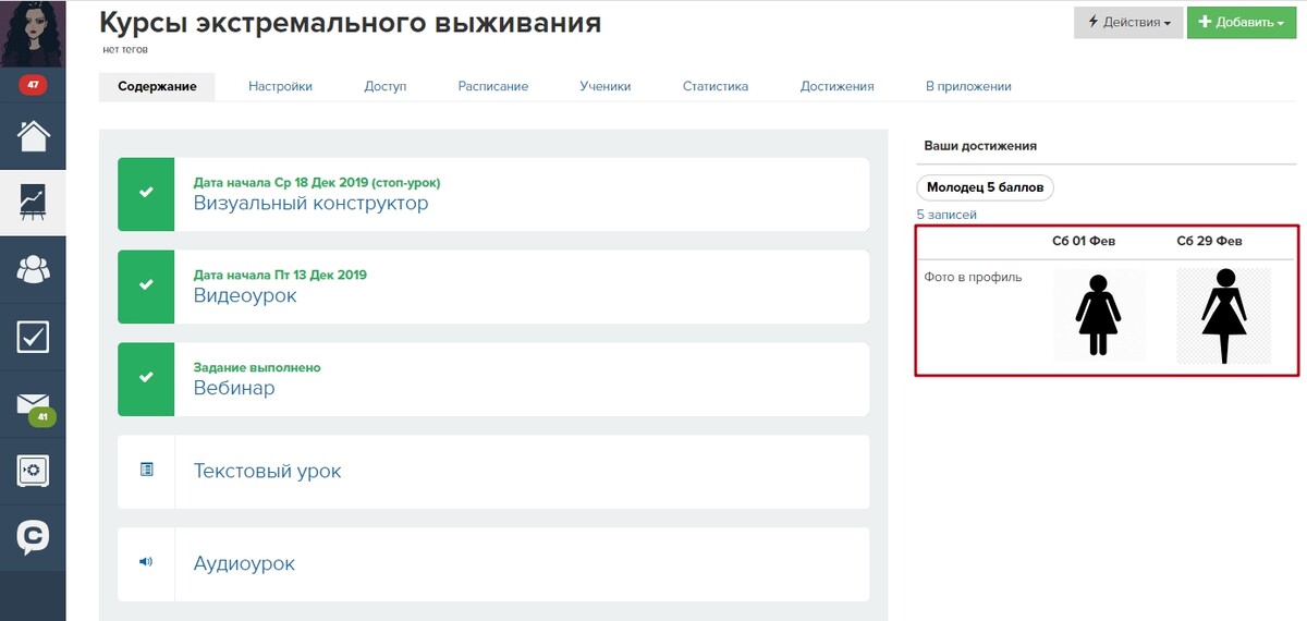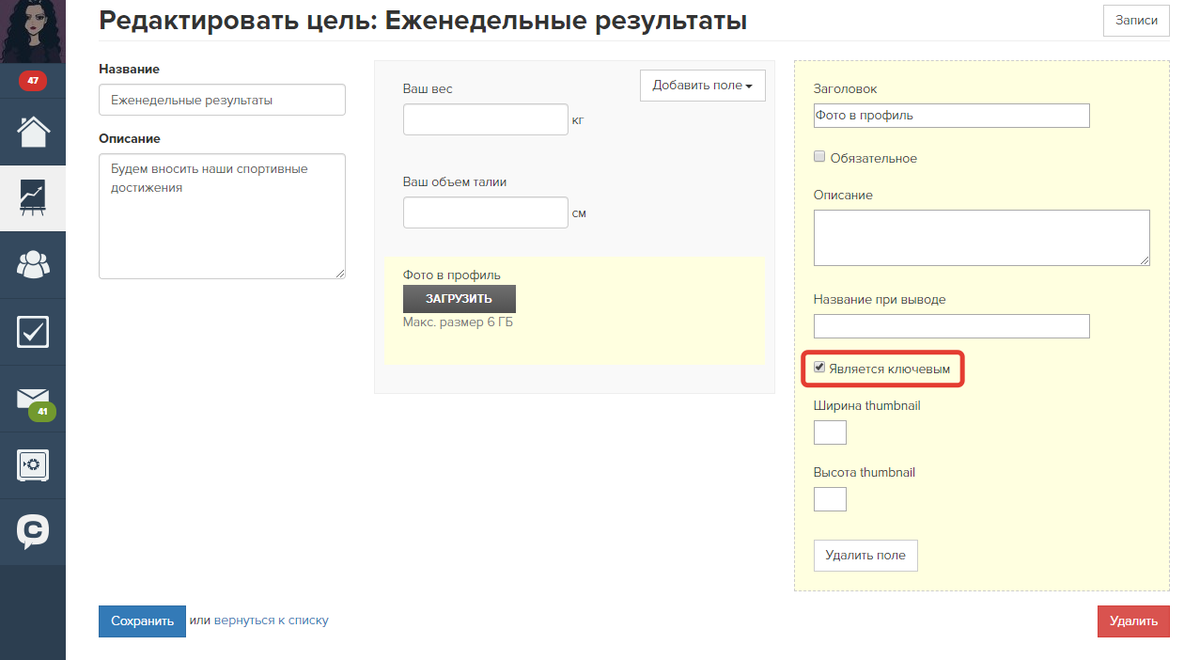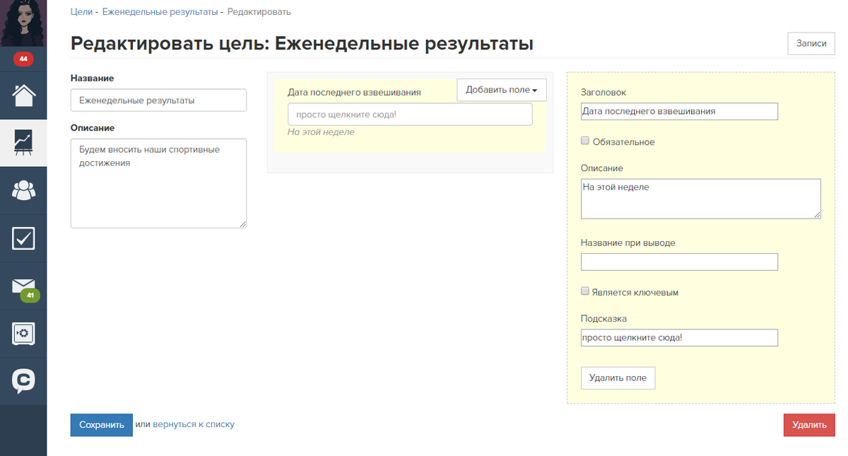 Цели могут стать полезным и практически незаменимым функционалом, если ваш тренинг, например, ориентирован на спорт. Тренеры получат возможность отслеживать динамику видеть физические показатели своих учеников наглядные изменения на фото или составлять графики результатов.