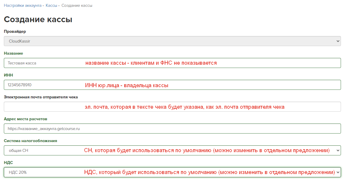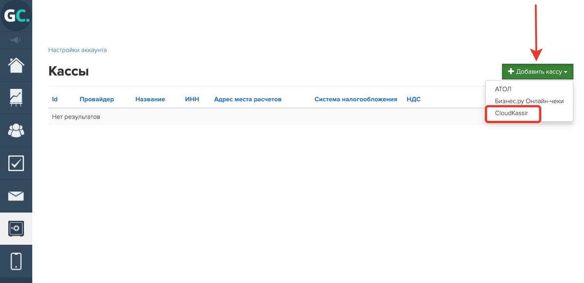 Для настройки кассы через GetCourse: