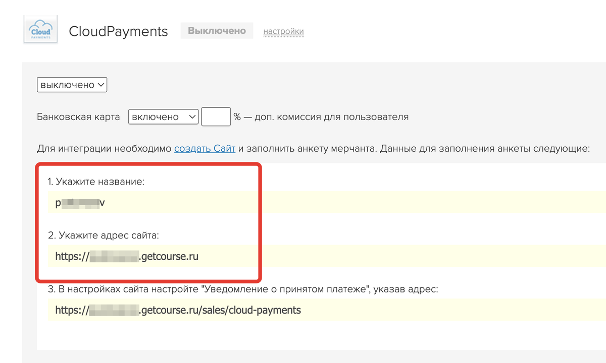 - Создайте сайт на платформе CloudPayments