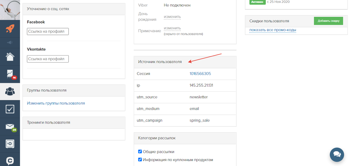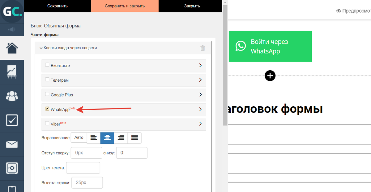 Вход через WhatsApp и учёт UTM в GetCourse