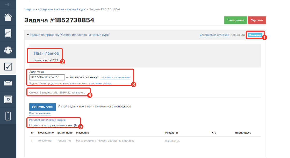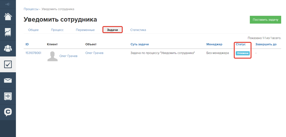 - Новая Ожидается, что менеджер выполнит действие, если ранее действия по задаче не были выполнены.