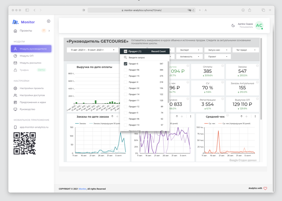Monitor Analytics легко интегрируется с системой Getcourse и инструментами. Независимо от темпов роста вашей компании или количества каналов для мониторинга, наша платформа адаптируется под любые нужды.